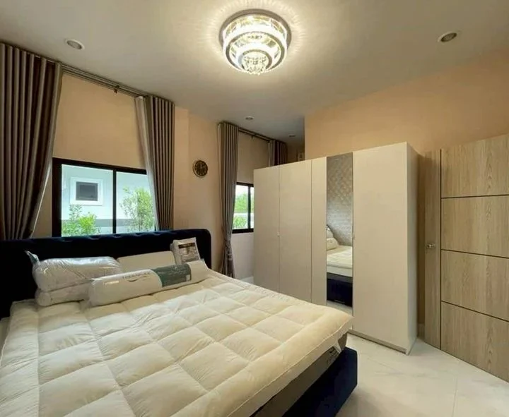• ห้องนอนที่สอง: เตียงคิงไซส์ใหม่เอี่ยม + ตู้เสื้อผ้าแบบบานกระจก 4 ประตู พร้อมลิ้นชัก